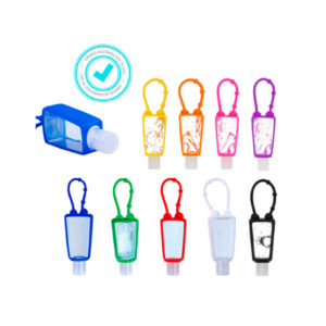 Gel antibacterial en botella con funda de silicón. Porcentaje de alcohol: 70 %.