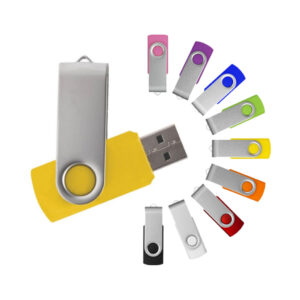 Memoria USB con clip de metal giratorio y carcasa de plástico duradero disponible en varios colores. Incluye cordón del mismo color de la USB.